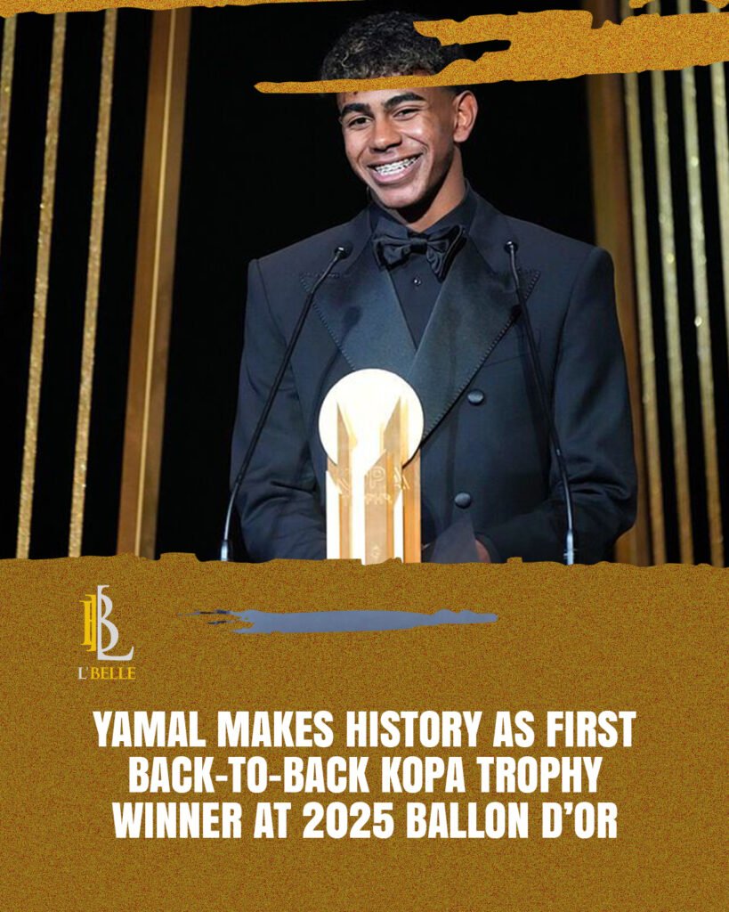 Lamine Yamal has done what no young player has done before, he has retained the Kopa Trophy for the second year running, earning it again at the 2025 Ballon d’Or ceremony as the world’s best under-21 player.